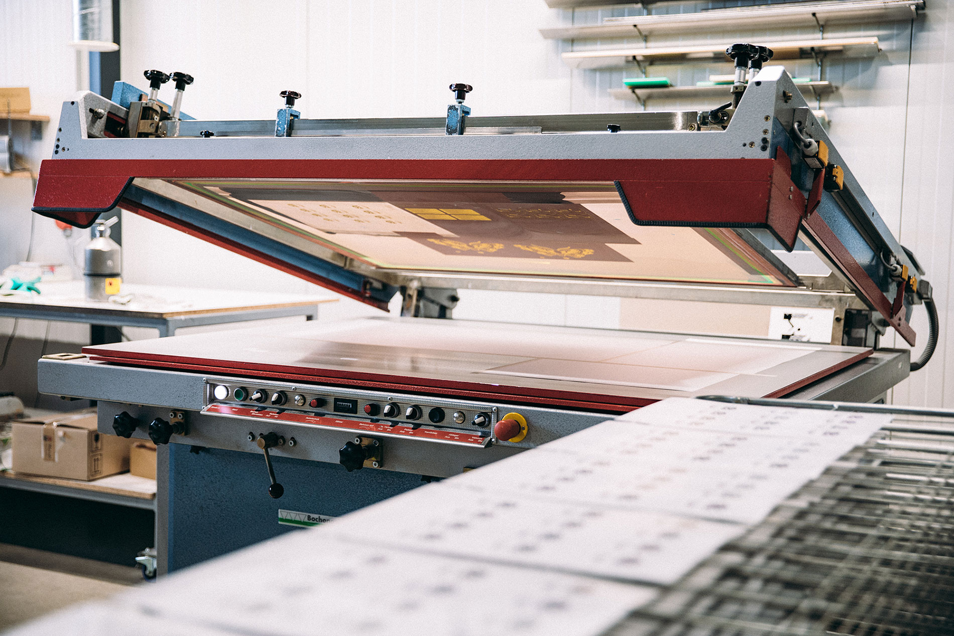 Im Siebdruck steht uns ein Halbautomat im Format 120 x 90 cm zur Verfügung!
